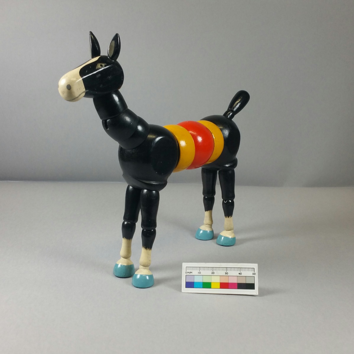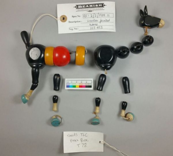 During this season’s summer practical work, I have been working on a wooden horse toy provided for conservation by Beamish Museum. The innocent plaything has seen better days: the jointed body once held together by elastic lay in pieces within the bag complete with a handy note informing the reader that the toy needed some ‘TLC’. The value had been placed in its function, and the curatorial team requested that the object be restored to working order. A simple repair job? Through pre-treatment analysis, a very different story began to unfold.